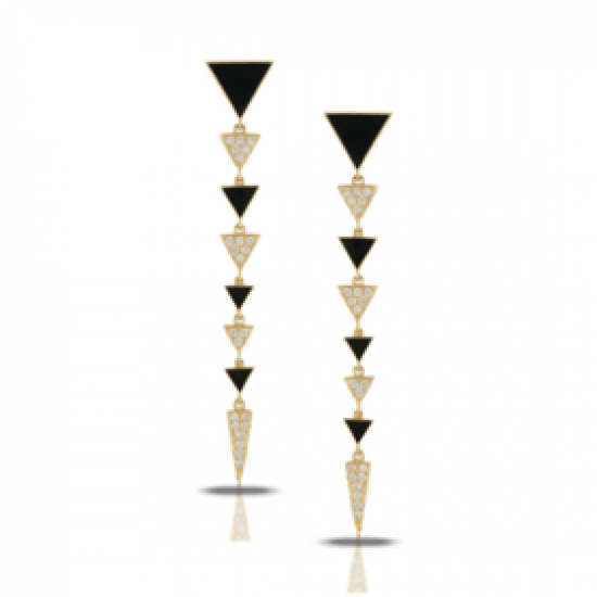 Black onyx and diamonds are set in geometric vintage setting with delicate pave detailing.